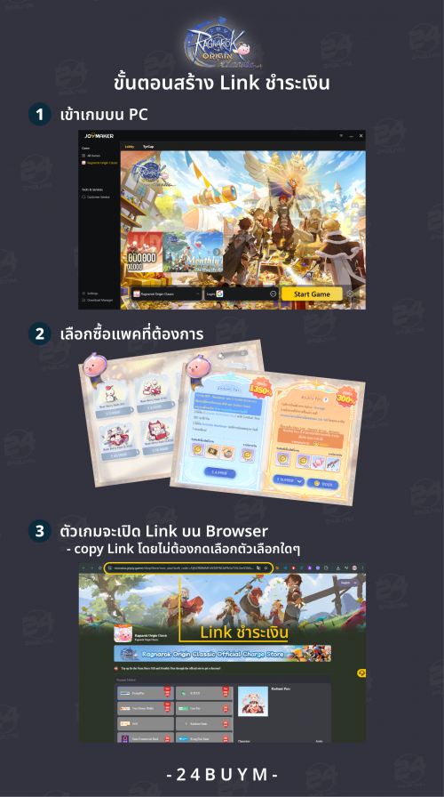 24BUYM คือตัวเลือกอันดับ 1 สำหรับการ เติมเกม Ragnarok Origin Classic ในไทย ด้วยระบบอัตโนมัติที่รวดเร็ว ราคาถูกกว่าช่องทางในเกมสูงสุด 40% ปลอดภัย และมีทีม Support พร้อมช่วยเหลือตลอด 24 ชั่วโมง จะเติมผ่านเว็บโดยตรงหรือสร้างลิงก์จากเวอร์ชัน PC ก็ทำได้ง่ายและเร็วเหมือนกัน เริ่มเติมได้เลยที่ 24buym.com